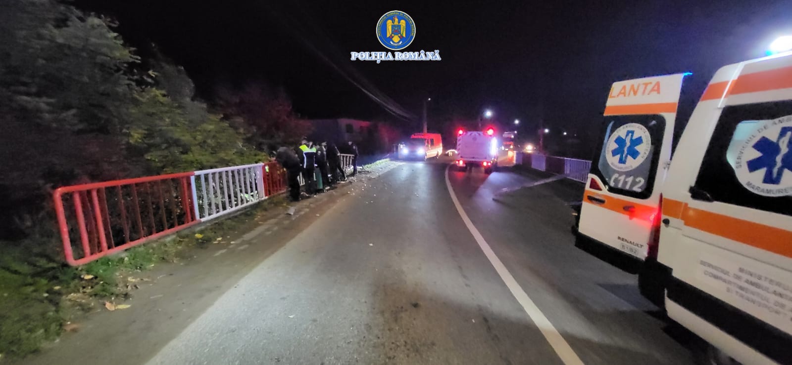 În cadrul cercetărilor efectuate la faţa locului, poliţiştii au stabilit că un bărbat de 52 de ani, care conducea o autoutilitară, nu ar fi adaptat viteza şi într-o curbă a părăsit partea carosabilă prin dreapta, a distrus balustrada podului peste pârâul Ronișoara și s-a răsturnat lângă albia pârâului.