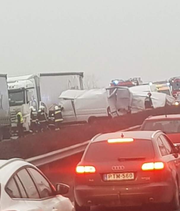 Traficul a fost complet blocat spre Austria, iar spre Budapesta s-a circulat pe o bandă, cea exterioară, pe banda a doua fiind maşinile salvatorilor.