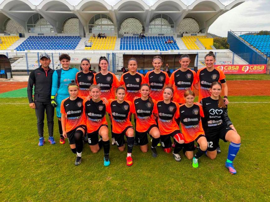 Echipa fanion din fotbalul feminin maramureşean a obținut o nouă victorie la un scor fluviu, 8-0 în fața celor de la AS Roma Florin Pădurean Timişoara. Fetele noastre au zburdat efectiv pe teren, prestând un joc solid, cu o posesie bună a mingii şi multe faze reuşite. Pe parcursul partidei, au intrat să joace toate fetele prezente azi la stadion (a fost rulat întreg lotul valid). De asemenea, remarcăm apetitul de gol al băimărencelor, 7 dintre jucătoare fiind pe lista marcatoarelor.