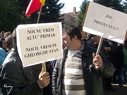 Oamenii i-au cerut prefectului sa justifice emiterea ordinului de incetare a mandatului de primar a lui Gheorghe Stan, in conditiile in care, spun ei, in tara sunt numerosi alti alesi locali care au fost condamnati la inchisoare cu suspendare, dar si-au pastrat functia. In plus, localnicii au spus ca sunt multumiti de munca pe care a facut-o primarul.