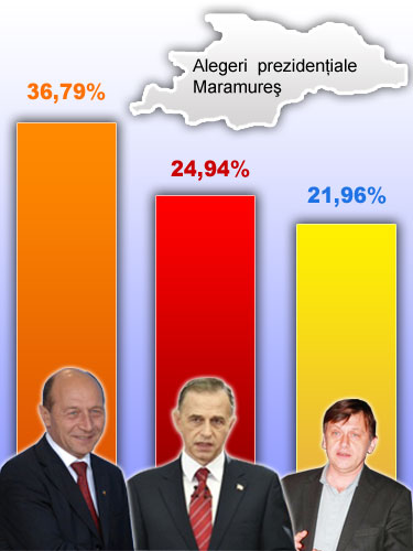 Azi, 24 noiembrie, la doua zile de la alegeri si dupa mai multe drumuri dus-intors Baia Mare – Leordina, Biroul Electoral Judetean Maramures a comunicat, in cursul orei 16.30, rezultatele finale pentru alegerea presedintelui Romaniei. Presedintele BEJ Maramures, Monika Camelia Balint, a declarat ca au fost centralizate datele din toate cele 470 sectii de votare, inclusiv sectia cu probleme din Leordina reusind sa isi numere buletinele. Potrivit acestora, castigator este Traian Basescu, cu 36,79%, urmat de Mircea Geoana – 24,94%.