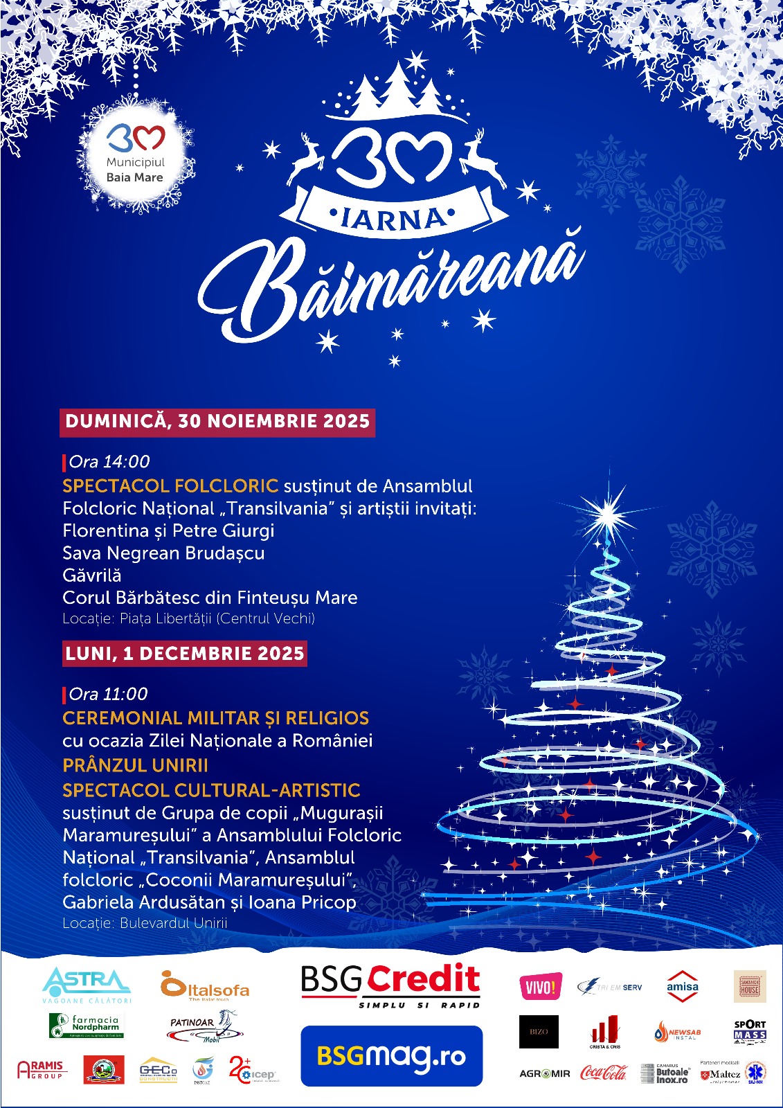 Primăria Municipiului Baia Mare anunță debutul oficial al programului „Iarna Băimăreană 2025”, unul dintre cele mai așteptate momente ale sezonului de sărbători. Evenimentul de deschidere va avea loc sâmbătă, 29 noiembrie 2025, în Piața Libertății (Centrul Vechi), unde băimărenii sunt invitați să participe la o seară festivă dedicată comunității.