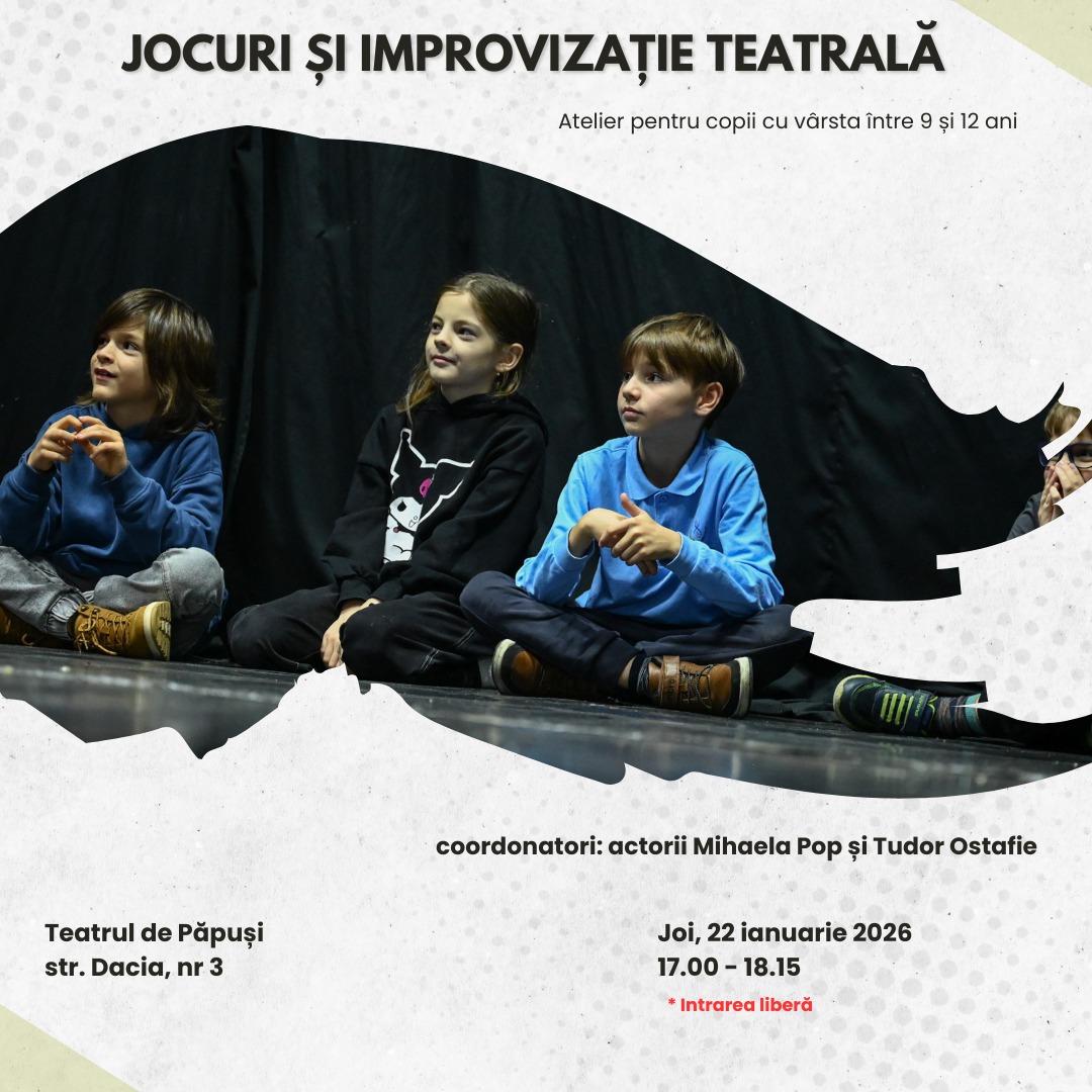 Este primul atelier organizat pentru copii în acest an: 𝐉𝐎𝐂𝐔𝐑𝐈 Ș𝐈 𝐈𝐌𝐏𝐑𝐎𝐕𝐈𝐙𝐀Ț𝐈𝐄 𝐓𝐄𝐀𝐓𝐑𝐀𝐋Ă – 𝐚𝐭𝐞𝐥𝐢𝐞𝐫 𝐜𝐨𝐨𝐫𝐝𝐨𝐧𝐚𝐭 𝐝𝐞 𝐚𝐜𝐭𝐨𝐫𝐢𝐢 𝐌𝐢𝐡𝐚𝐞𝐥𝐚 𝐏𝐨𝐩 ș𝐢 𝗧𝘂𝗱𝗼𝗿 𝗢𝘀𝘁𝗮𝗳𝗶𝗲