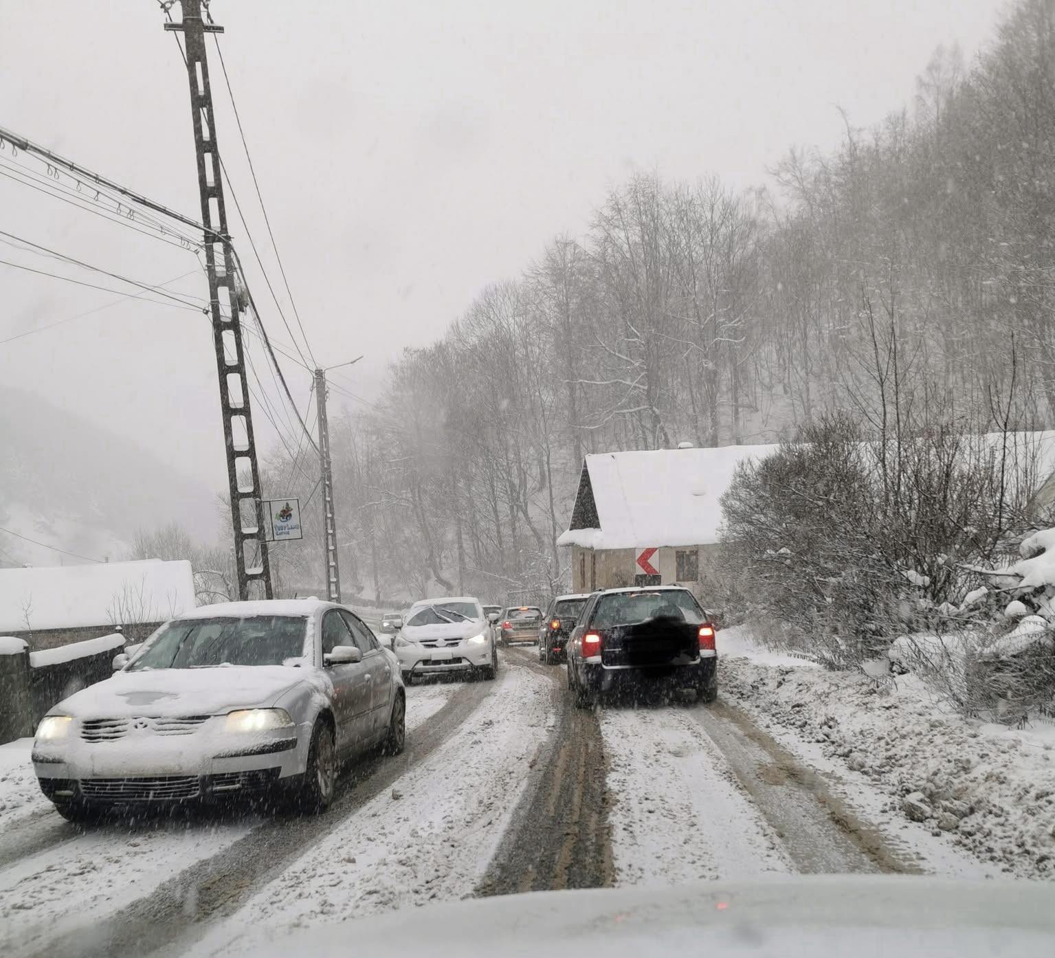 Totodată, îngreunarea traficului a fost accentuată de condițiile meteo nefavorabile, respectiv ninsoarea, înregistrată pe anumite sectoare de drum.