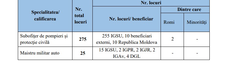 Prezentul anunț stabilește aspecte procedurale privind organizarea și desfășurarea recrutării și selecției candidaților în vederea participării la concursul de admitere organizat la Școala de Subofițeri de Pompieri și Protecție Civilă „Pavel Zăgănescu” Boldești – sesiunea octombrie 2023– februarie 2024. Pentru sesiunea de admitere octombrie 2023– februarie 2024, locurile aprobate la Școala de Subofițeri de Pompieri și Protecție Civilă „Pavel Zăgănescu” Boldești sunt următoarele: