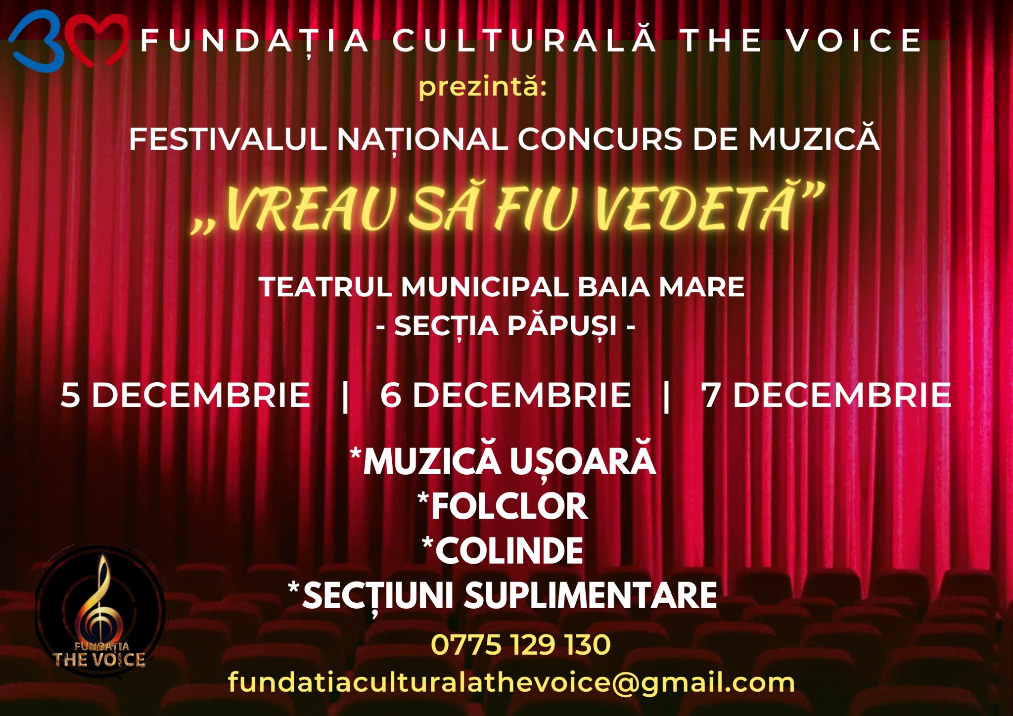 Baia Mare devine, în luna decembrie, capitala tinerelor talente muzicale din România. Fundația Culturală The Voice organizează, între 5 și 7 decembrie 2025, Festivalul Național-Concurs de Muzică „Vreau să fiu vedetă”, un eveniment dedicat promovării artiștilor aflați la început de drum.