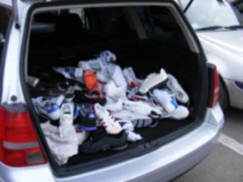 Politistii au gasit in cele patru autoturisme 257 perechi pantofi sport, treninguri, produse cosmetice, articole de imbracaminte si telefoane mobile care prezinta indicii de contrafacere si erau destinate comercializarii neautorizate.