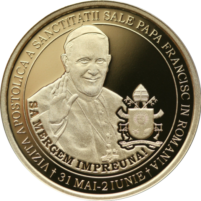 Lansarea în circuitul numismatic a monedelor din aur şi a monedelor din alamă pentru colecţionare, cu tema Vizita Apostolică a Sanctităţii Sale Papa Francisc în România, se realizează prin sucursalele regionale Bucureşti, Cluj, Iaşi şi Timiş ale Băncii Naţionale a României.