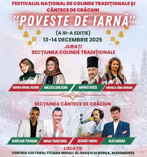 În perioada 13-14 decembrie orașul Borsa devine capitala colindelor. Spectacolele ediției a III-a a Festivalului național de colinde tradiționale și cântece de Crăciun, Poveste de Iarnă, vor avea loc la Centrul Cultural Titiana Mihali. Vor fi microrecitaluri și voci angelice, două gale ale laureaților.