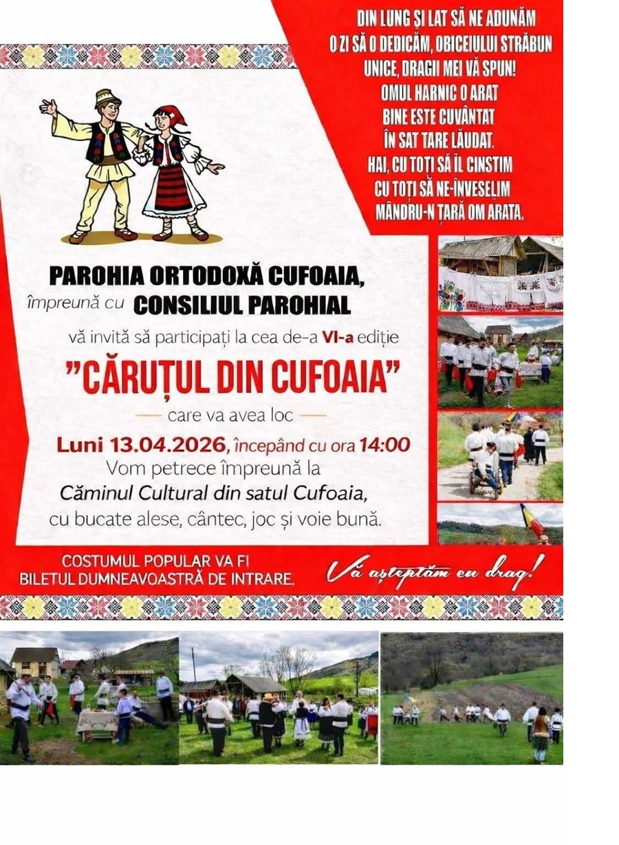 Organizat de Parohia Ortodoxă Cufoaia și Consiliul Parohial, acest eveniment este o invitație deschisă către toți cei care doresc să simtă căldura unei comunități unite și frumusețea obiceiurilor românești.