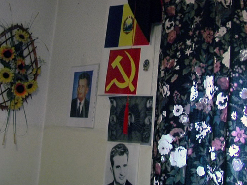 In biroul lui Eugen Serban, peretii sunt acoperiti cu portrete ale lui Nicolae Ceausescu, dar si cu fotografii cu vechea stema si fostul steag al Republicii Socialiste Romania, toate in amintirea vremurilor de demult in care “cu adevarat se traia bine”, spune Serban. Deviza noului PCR este “Paine fara munca nu se poate, dar nici munca fara paine”.