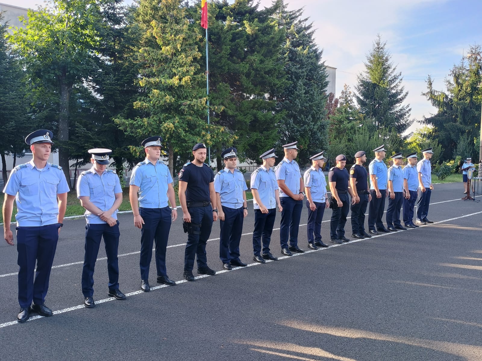 Cu această ocazie, pe platoul din incinta unităţii, s-a prezentat onorul şi s-a intonat Imnul Naţional al României. În continuare, s-a dat citire Ordinului Inspectorului şef pentru înaintarea în grad a 2 ofiţeri şi 18 subofiţeri, prilej cu care a înmânat noile grade.