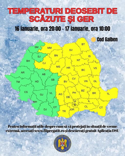 ℹ️ Pentru informații utile despre cum să vă protejați în situații de vreme extremă, accesați www.fiipregatit.ro și descărcați gratuit Aplicația DSU.