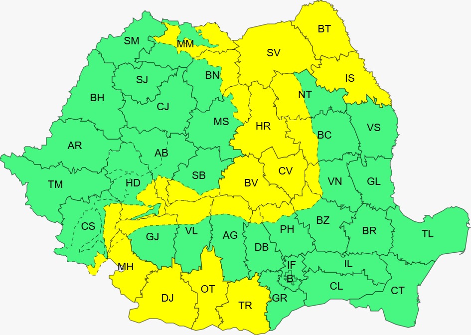De asemenea o ATENȚIONARE METEOROLOGICĂ COD GALBEN intră în vigoare în 31 decembrie, ora 08 până în 31 decembrie, ora 20.