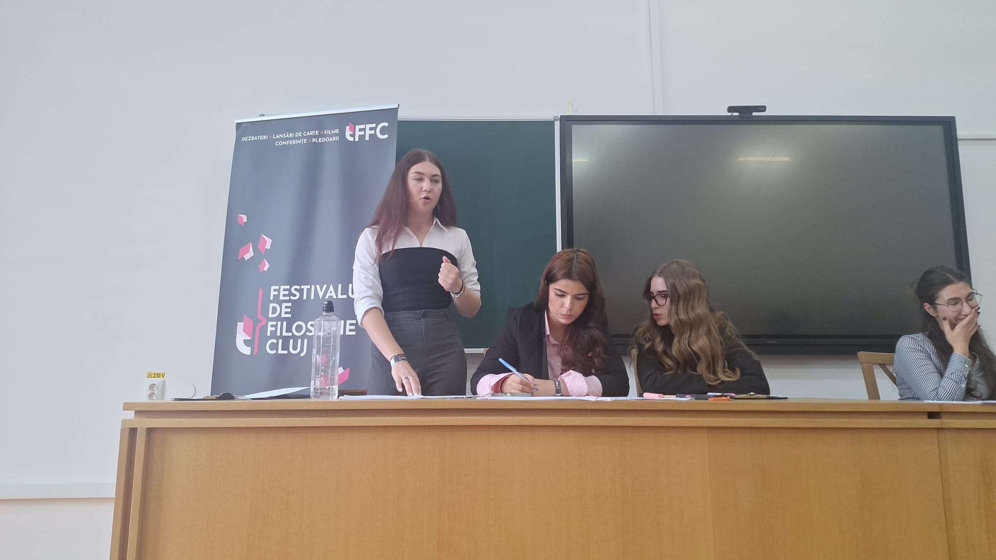 „La evenimentele de vineri, 10 octombrie 2025 și sâmbătă, 11 octombrie 2025, din cadrul Festivalului de Filosofie desfășurat la Facultatea de Filosofie de la Universitatea Babeș-Bolyai din Cluj-Napoca, elevele colegiului nostru s-au prezentat admirabil.