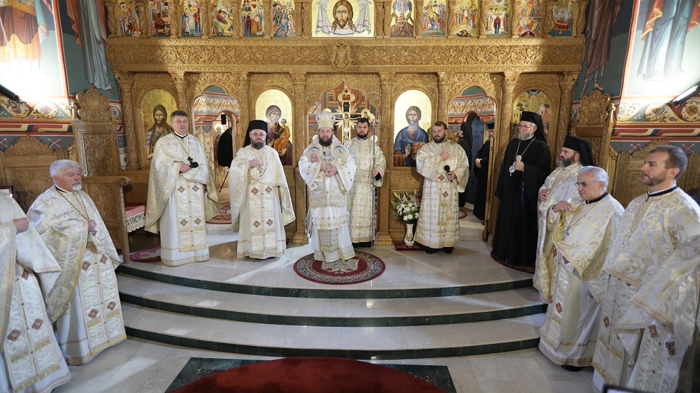 În timpul Sfintei Liturghii, la momentul ecteniei pentru morţi, a fost pomenit Înaltpreasfinţitul Părinte Arhiepiscop Justinian şi au fost binecuvântat colacul, coliva şi vinul pentru paos.