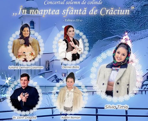 Ne vor colinda Iuliana Demian-Goloman, Denisa Botiș, pr. Dorin Dragotă, Adelin Roman, Silvia Timiș, Corul Parohiei Ortodoxe Făruești.