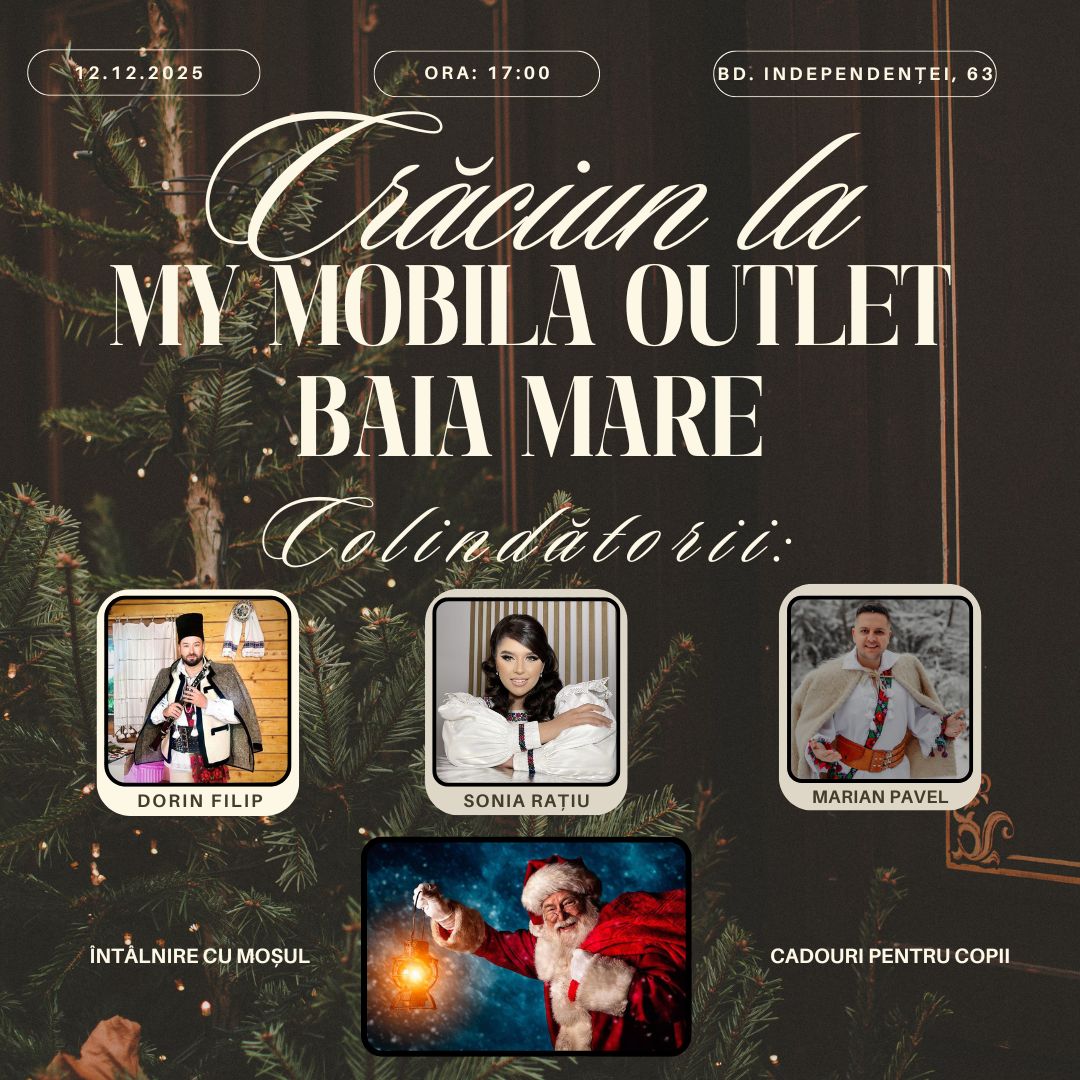 Atmosferă de sărbătoare și colinde tradiționale îi așteaptă pe băimăreni joi, 12 decembrie 2025, la evenimentul „Crăciun la My Mobila Outlet Baia Mare”, organizat pe Bulevardul Independenței nr. 63, începând cu ora 17:00.