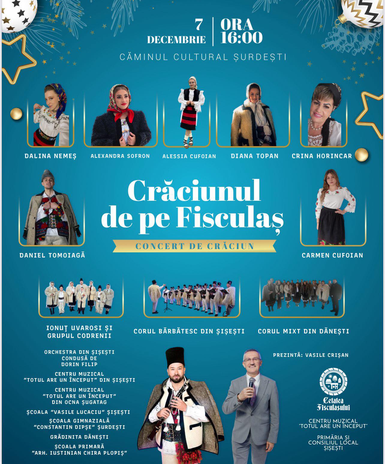Comuna Șișești se pregătește pentru unul dintre cele mai așteptate evenimente ale iernii: „Crăciunul de pe Fisculaș”, un concert dedicat sărbătorilor de iarnă, care va avea loc pe 7 decembrie, de la ora 16:00, la Căminul Cultural Șurdești.
