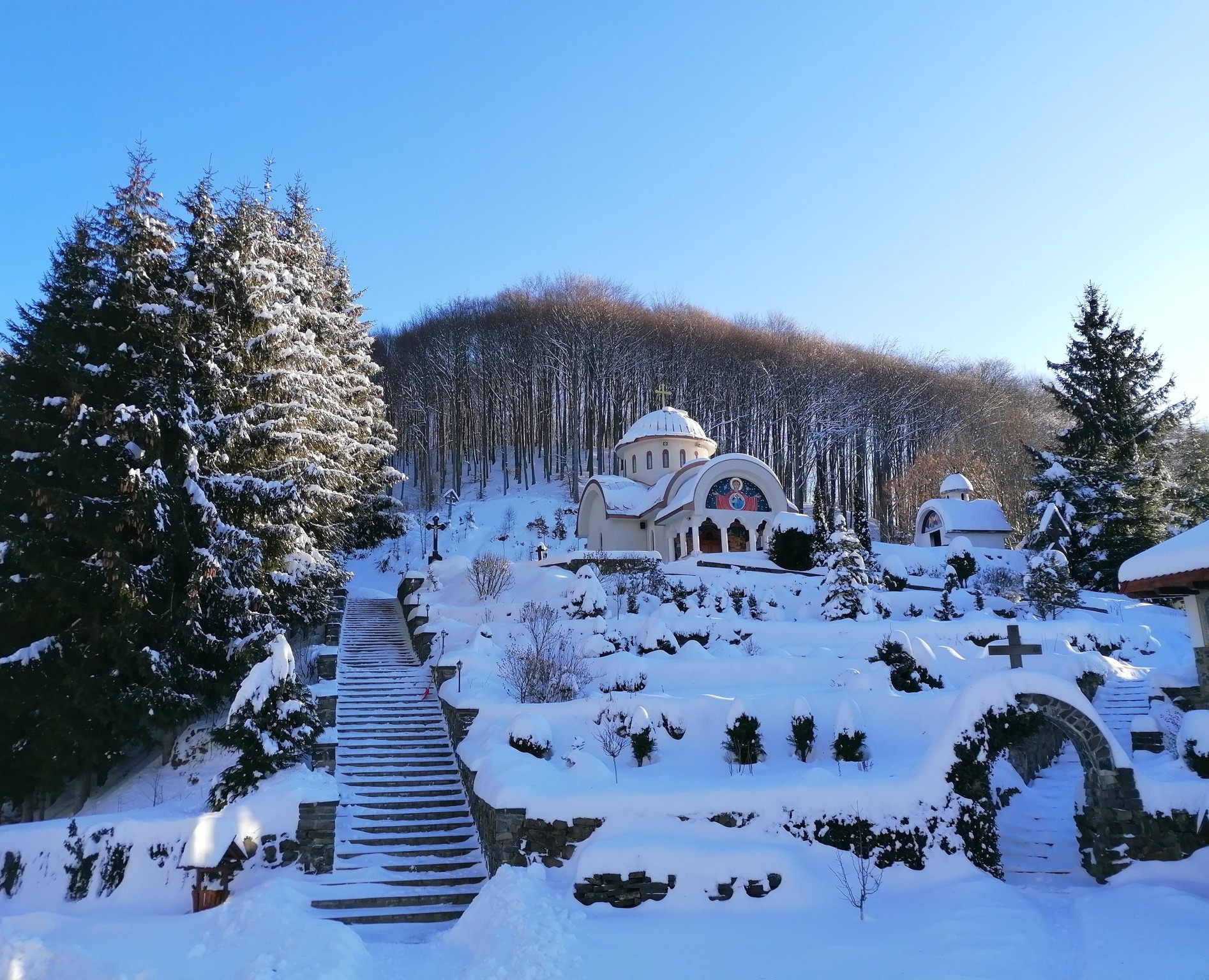 hramuri, iar între anii 2008-2009, s-au zidit alte patru chilii şi un Altar de vară. Mănăstirea are o bibliotecă cu aprox. 2.000 de cărți.