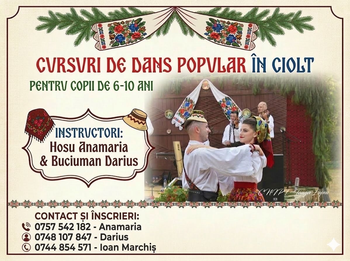 Copiii cu vârste cuprinse între 6 și 10 ani sunt invitați să descopere frumusețea dansului popular în cadrul unor cursuri organizate la Căminul Cultural „Gheorghe Lazăr”.