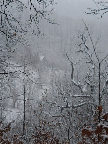 Final de an 2009 meteo-turistic deprimant, cetos, ploios, cenusiu, tern. Primele doua zile ale lui 2010 au fost aproape identice, cu ninsoare slaba dar continua in cea de-a treia, temperatura de 0C, traseu umed-noroios, mocirlos pe alocuri. In plus, padurea era decimata de doboraturile de vant arborii fiind rupti in proportie de 10-25 % pe alocuri, generate de neaua abundent cazuta peste coroanele fageturilor nedespuiate de frunze in prima decada a lui octombrie 2009. Turisti ? Niciunul.