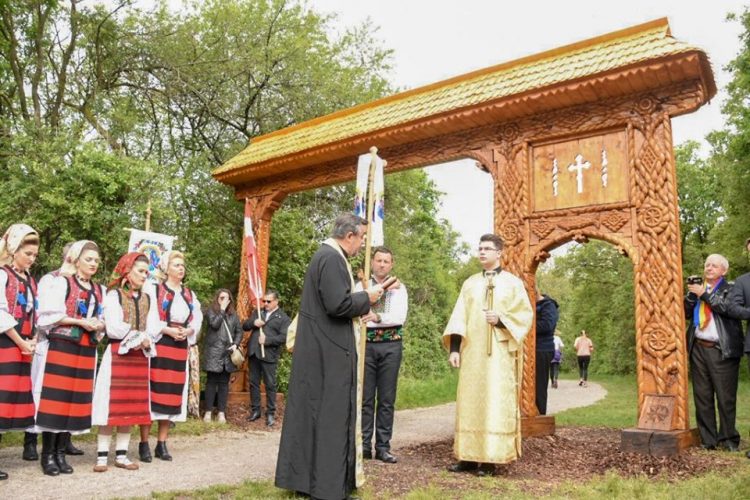 Duminică dimineața poarta a fost sfințită de preotul dr. Nicolae Dura de la Biserica Ortodoxă din Viena, în prezența delegaților maramureșeni, a vicepreședintelui CJ Maramureș, Doru Ioan Dăncuș, a prefectului Vasile Moldovan, a consilierilor județeni Florica Roman, Pop Călin, Mihai Kokenyesdi, Anișoara Mihali, Radu Coman, Vlad Sorin, Buda Ioan, Gheorghe Bîrlea, Pop Sorin, Dorel Orza, Nicolae Mișulec, Gheorghe Marian și a mai multor români din diaspora vieneză.