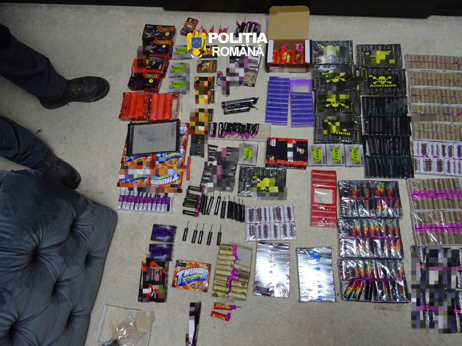 În cadrul verificărilor, polițiștii au descoperit și ridicat mai multe bunuri, documente și înscrisuri de natură a proba activitatea infracțională. Este vorba despre 146.950 de lei, 6.020 de euro, 41 de dolari americani, 2.792 de bucăți articole pirotehnice, o arbaletă, dispozitive speciale de marcat și dispozitive contrafăcute pentru simularea unor marcaje reale, telefoane mobile și medii de stocare, precum și documente și înscrisuri de natură a proba activitatea infracțională.