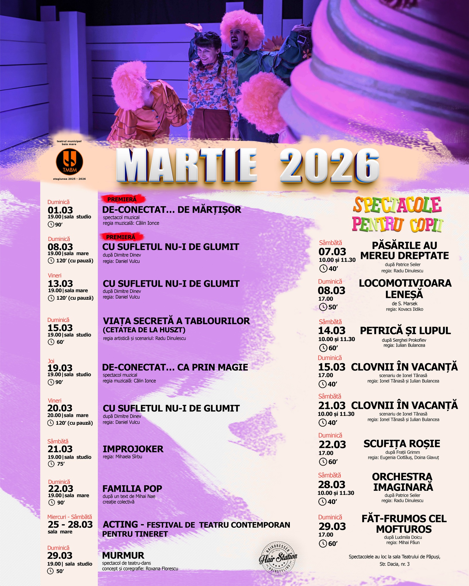 Actorii Teatrului Municipal Baia Mase întâmpină primăvara cu două spectacole în premieră și cu vestea că veți avea posibilitatea să achitați biletele la spectacole și cu cardurile culturale Pluxee, Edenred și UP Cultura.