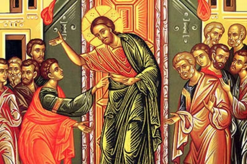 Potrivit relatărilor din Evanghelia după Ioan, după Înviere, Iisus Hristos li S-a arătat ucenicilor „prin ușile încuiate”, confirmând realitatea Învierii și întărindu-le credința. Apostolul Toma nu a fost prezent la această primă arătare, iar atunci când ceilalți ucenici i-au spus că Domnul este viu, a refuzat să creadă în absența unei dovezi directe, exprimând îndoiala care avea să-l definească în tradiția creștină.