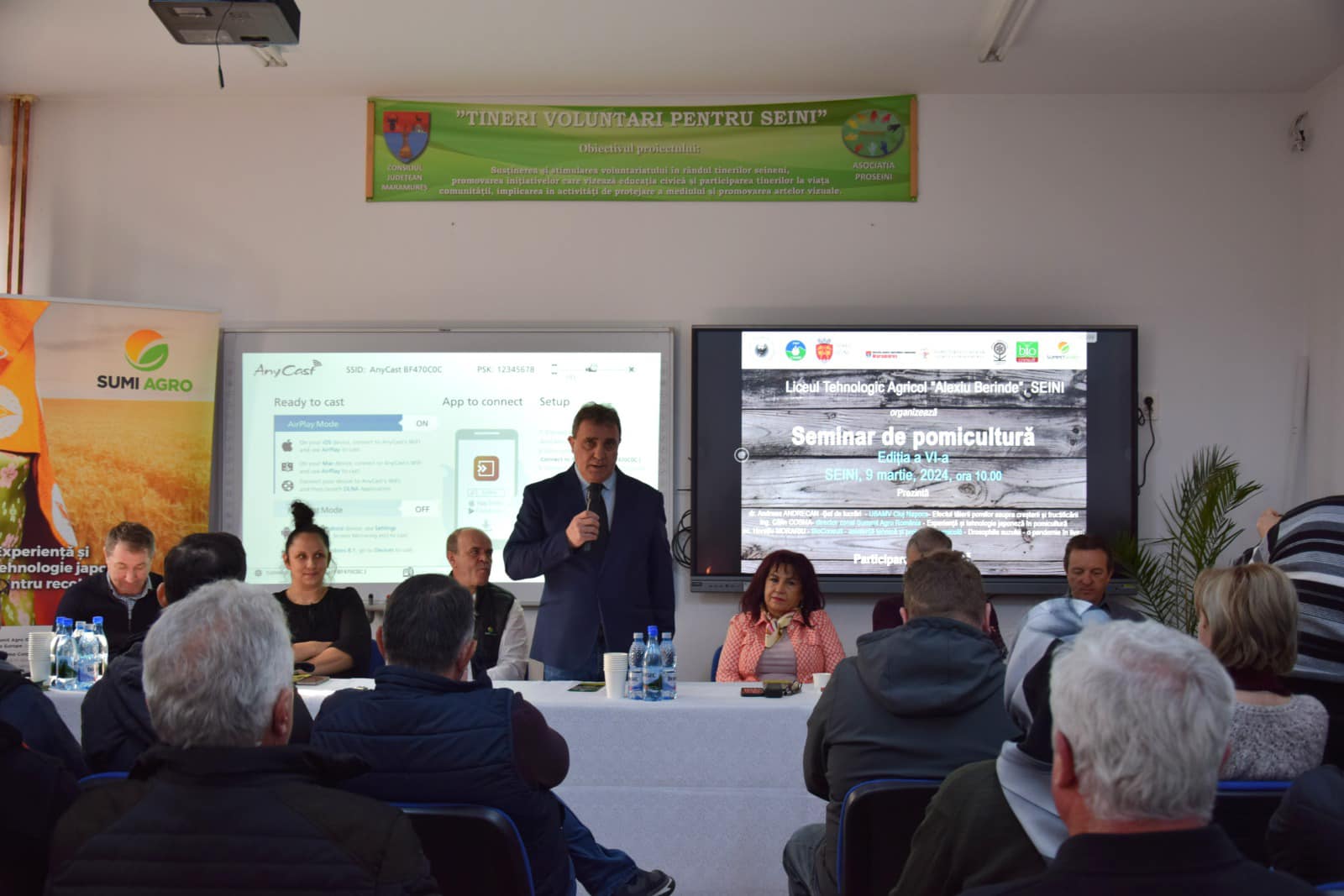Sâmbătă, 9 martie, s-a desfăşurat ediția a VI-a a Seminarului de Pomicultură, dedicat pomicultorilor pasionați și celor interesați de îngrijirea livezilor. Evenimentul a fost găzduit de Liceul Tehnologic Agricol „Alexiu Berinde” din Seini, iar participanții au asistat la prezentările teoretice și discursurile susținute de: directorul Direcției pentru Agricultură Județeană Maramureș, Cocîrcă Dan Ioan; directorul APIA Maramureș, Urs Ioan Florin; inspector şcolar Județean al județului Maramureș, Pop Mihai Cosmin; dr. Andreea Andrecan, şef de lucrări la USAMV Cluj Napoca, Facultatea de Horticultură și Afaceri în Dezvoltare Rurală, care a prezentat „Efectul tăierii pomilor asupra creșterii și fructificării”; director zonal ing. Călin Cosma de la SC SUMMIT AGRO ROMÂNIA, care a vorbit despre „Experiență și tehnologie japoneză în pomicultură” și ec. Horațiu Morariu de la Bioconsult, care a semnalat o „pandemie în livezi – Drosophila suzukii”. Fiecare contribuție a fost specifică și diferită una de alta, oferind astfel participanților o perspectivă largă asupra diverselor aspecte ale pomiculturii și îngrijirii livezilor. Această varietate de abordări a îmbogățit discuțiile și a furnizat participanților o gamă bogată de informații și perspective în domeniu.