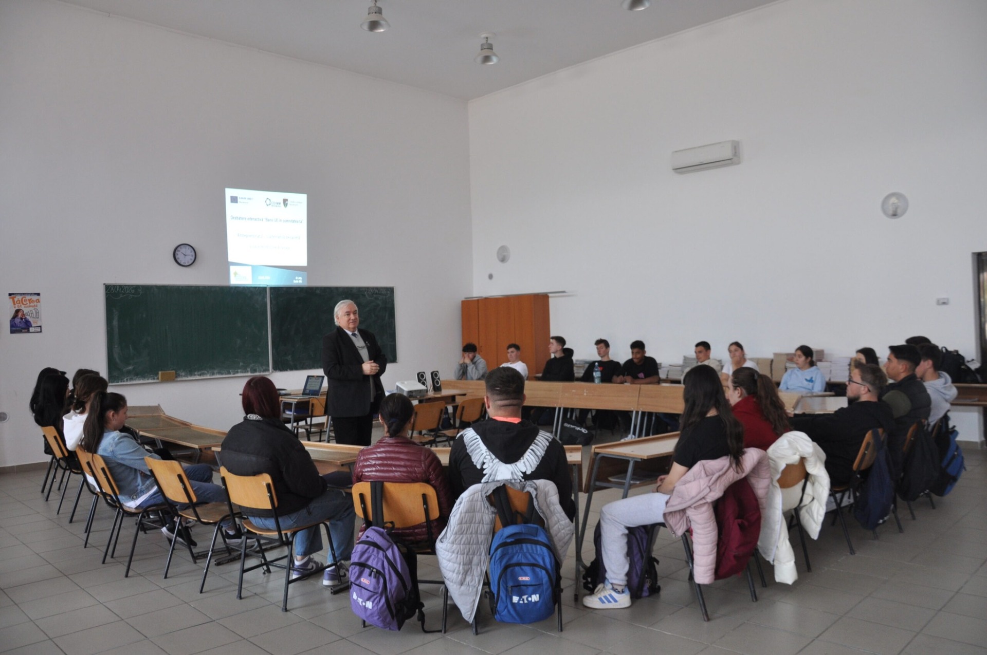 Marți, 28 aprilie 2026, Centrul EUROPE DIRECT Maramureș a desfășurat o activitate educativă în cadrul proiectului „Învață de la antreprenori”, inițiat de Camera de Comerț și Industrie Maramureș, în colaborare cu Inspectoratul Școlar Județean Maramureș. Evenimentul a fost organizat în parteneriat cu Școala Profesională Fărcașa și s-a desfășurat sub forma unei întâlniri de educație antreprenorială, începând cu ora 11:00.