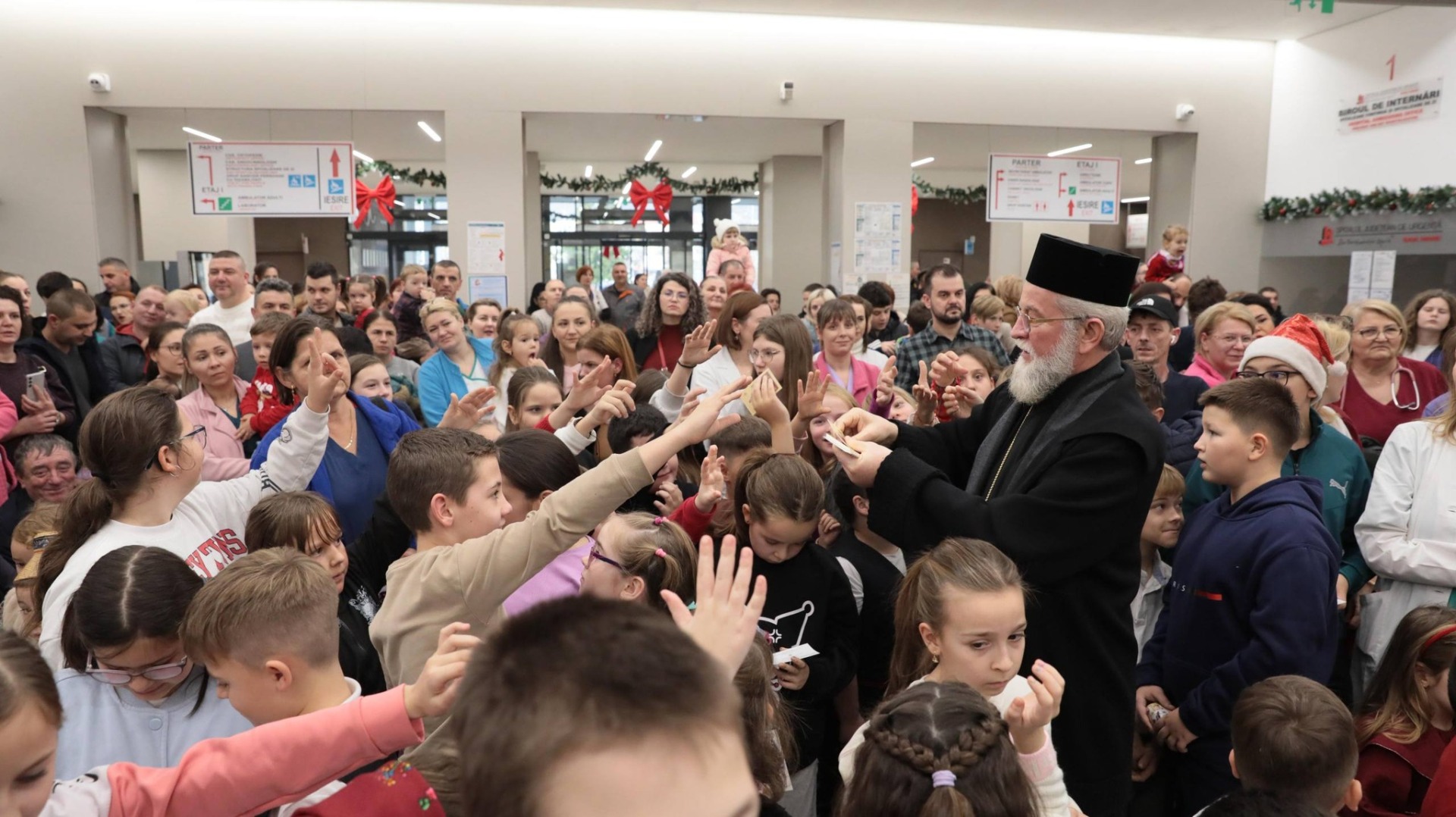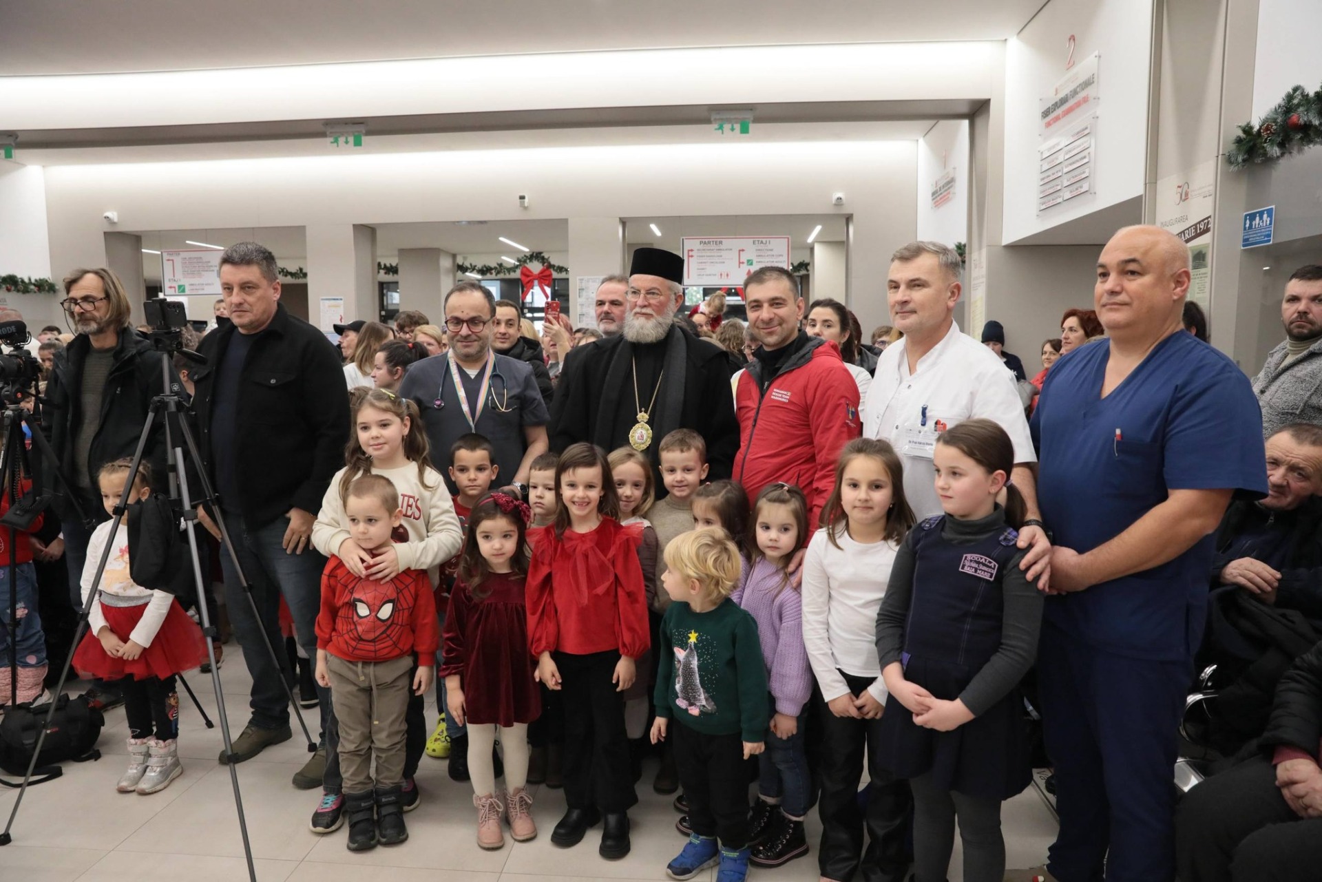 „Ne aflăm în zilele premergătoare Praznicului Nașterii Domnului, și, la invitația făcută cu mult drag de domnul director Dr. Rareș Pop, am venit cu multă bucurie pentru a fi împreună cu dumneavoastră și a binecuvânta această activitate frumoasă precum și pe toți ostenitorii din cadrul Spitalului Județean. Vă dorim sărbători frumoase și să vă bucurați pentru că trăiți într-o lume care are darul păcii și să ne rugăm pentru cei care decid soarta lumii oferind liniște și pace. Copii, să îi iubiți pe părinți, educatori, dascăli și să ziceți rugăciunea „Îngerașul” pentru ei. Să rămâneți frumoși și credincioși”, a explicat Preasfințitul Părinte Iustin.