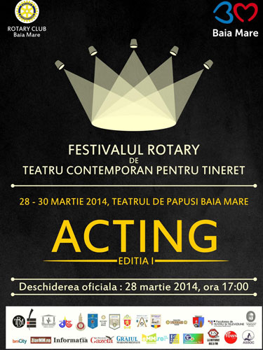 In perioada 28-30 martie, Rotary Club Baia Mare organizeaza prima editie a Festivalului Rotary de Teatru Contemporan pentru Tineret, denumit Acting. La festival participa trupe de teatru formate din liceeni din Bistrita, Targoviste, Panciu, Sebes, Campeni, Vulcan, Sighetu Marmatiei si Baia Mare. Festivalul, parte a evenimentului “Regalul artelor”, organizat de Teatrul Municipal Baia Mare, este sprijinit de Primaria Baia Mare si cluburi Rotary din tara. El va avea loc la Teatrul de Papusi, incepand de vineri, 28 martie, ora 17.