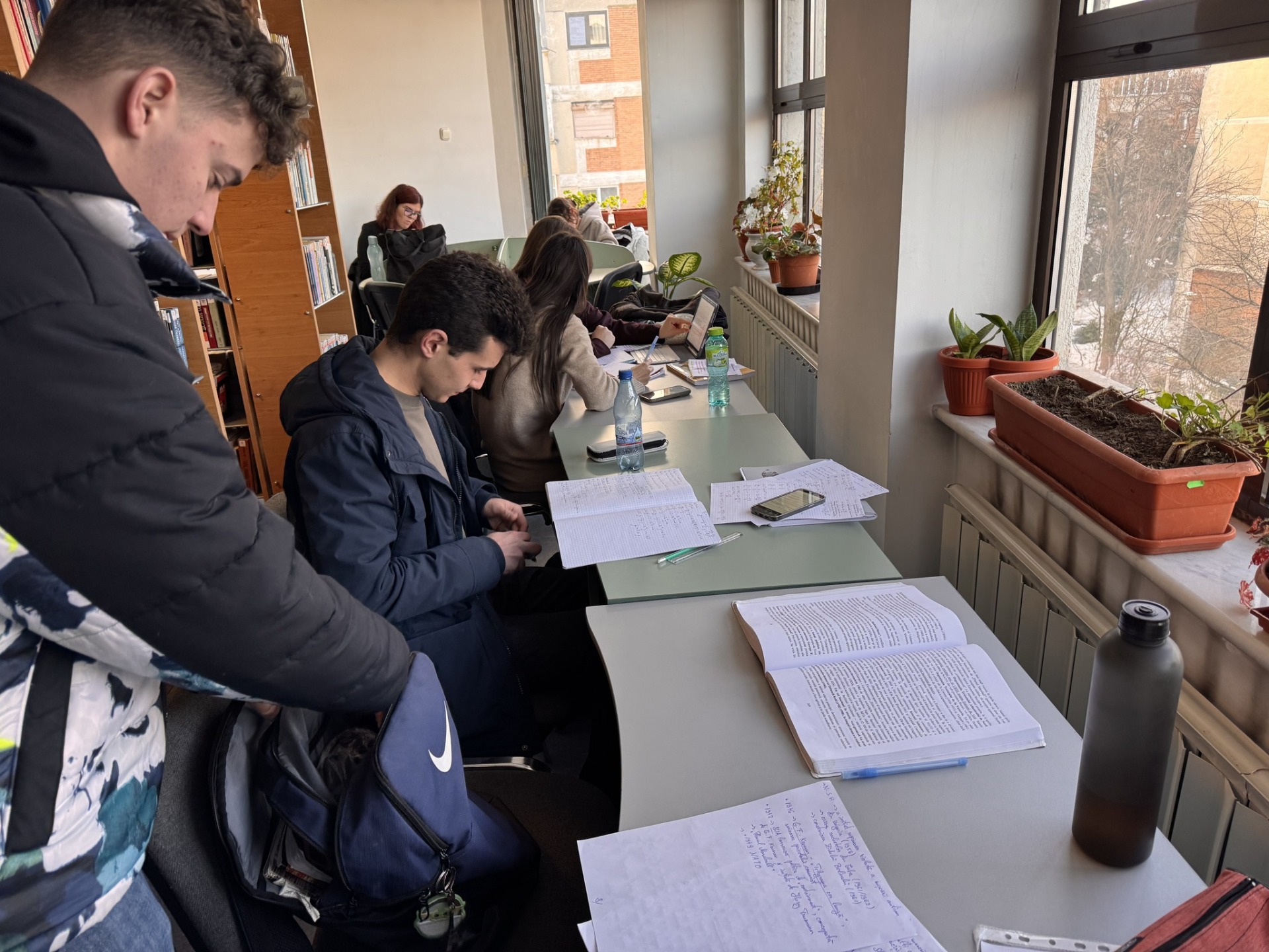 Iarna a transformat biblioteca într-un refugiu primitor pentru elevii care aleg să studieze împreună. La Compartimentul Împrumut carte pentru adulți se aud șoapte discrete prin care tinerii analizează împreună texte literare sau își explică reciproc teoreme dificile.