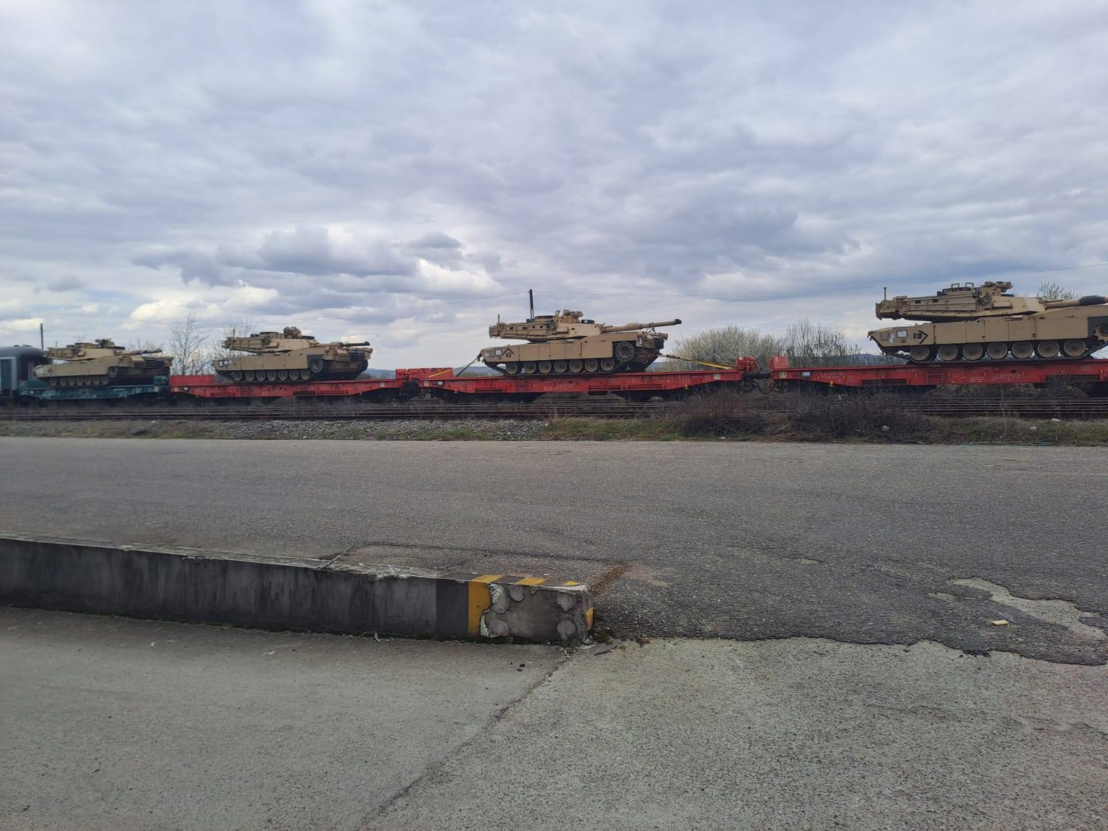 Mai multe vehicule militare au fost surprinse, în această dimineață, în municipiul Baia Mare, în timp ce erau transportate pe calea ferată. Imaginile, realizate de martori, surprind echipamentele încărcate pe platforme feroviare, în plin proces de tranzit.