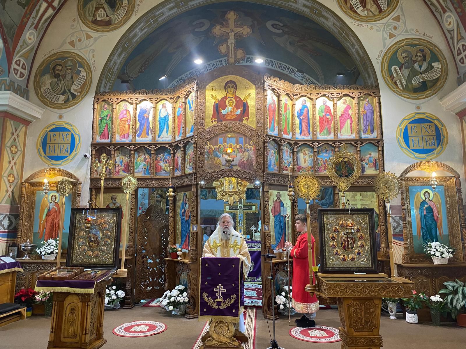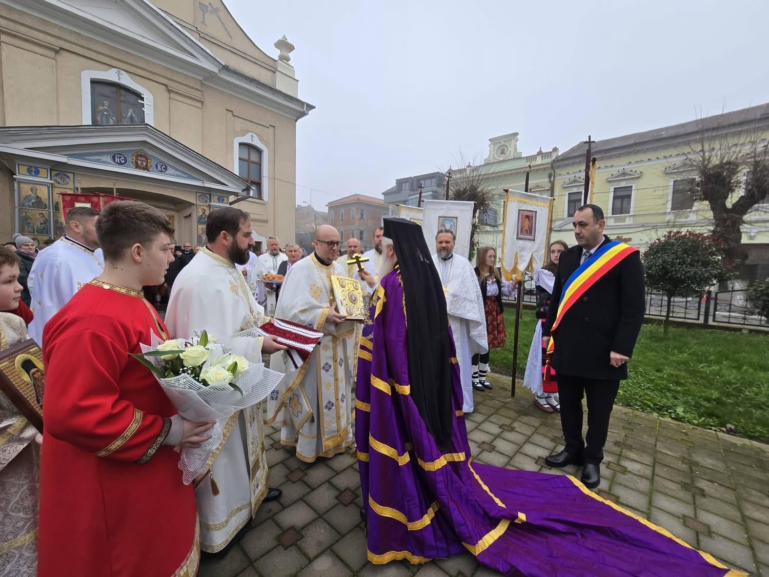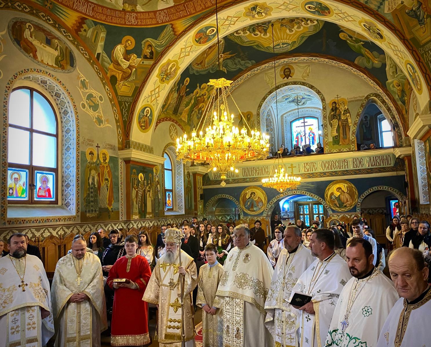 Cu acest prilej, în Biserica Vicariatului cu hramul „Înălțarea Sfintei Cruci”, ierarhul a oficiat Sfânta și Dumnezeiasca Liturghie, fiind înconjurat de un sobor de clerici. Din soborul slujitor au făcut parte: pr. Marius-Nicolae Lauruc, noul vicar al Vicariatului Ortodox Ucrainean din România, care este și parohul bisericii, pr. Nicolae Lauruc, fostul vicar al Vicariatului Ortodox Ucrainean, pr. Ioan Iurcea, consilierul Vicariatului Ortodox Ucrainean, pr. Petru Rahovan, protopopul Protopopiatului Ortodox Ucrainean Sighetu Marmației, pr. Petru Popovici, secretarul Protopopiatului Ortodox Ucrainean Lugoj, precum și alți preoți invitați din cele două protopopiate ale Vicariatului.