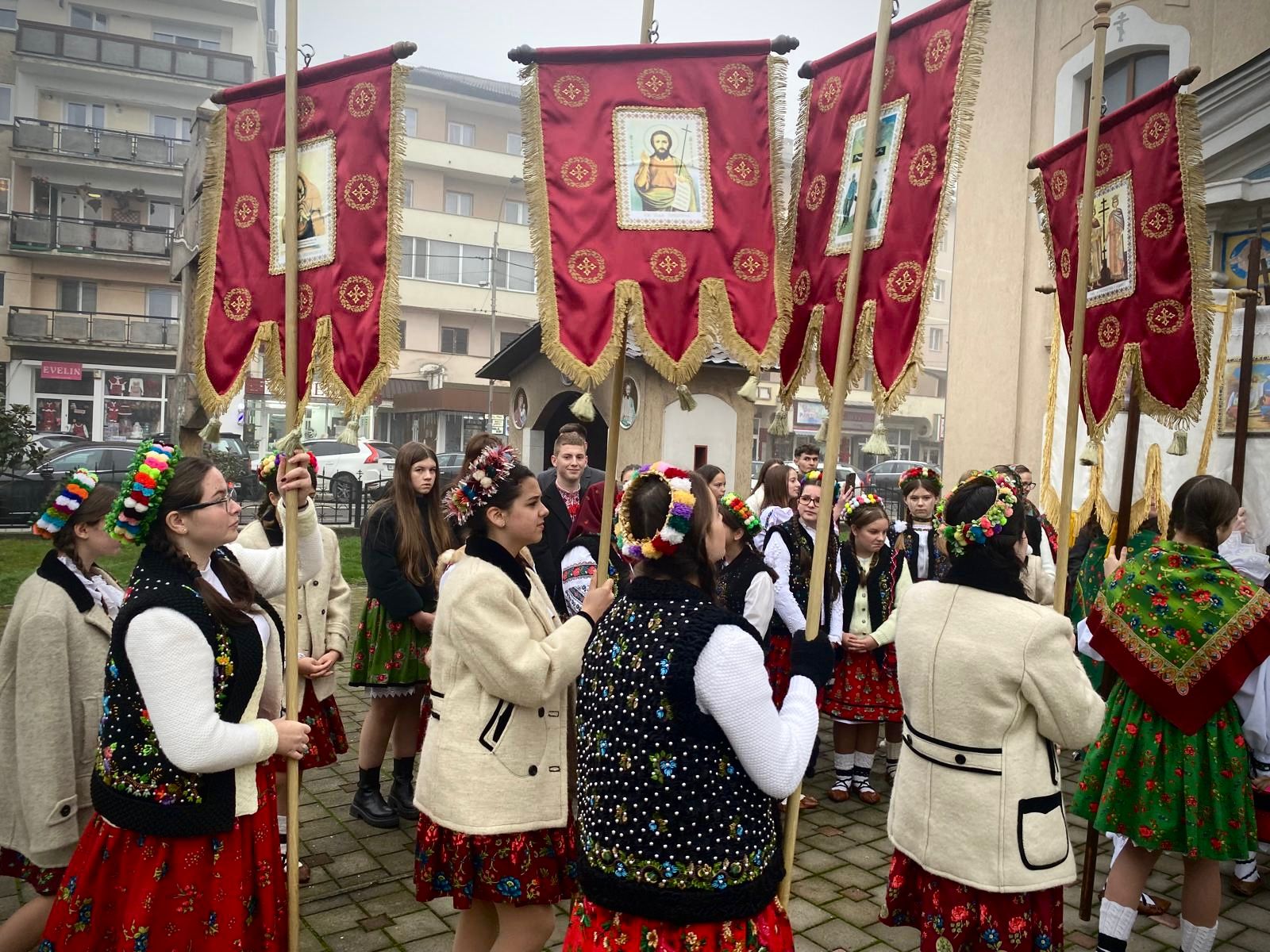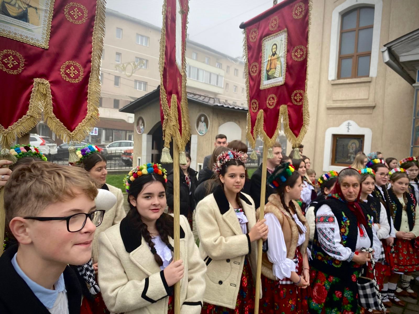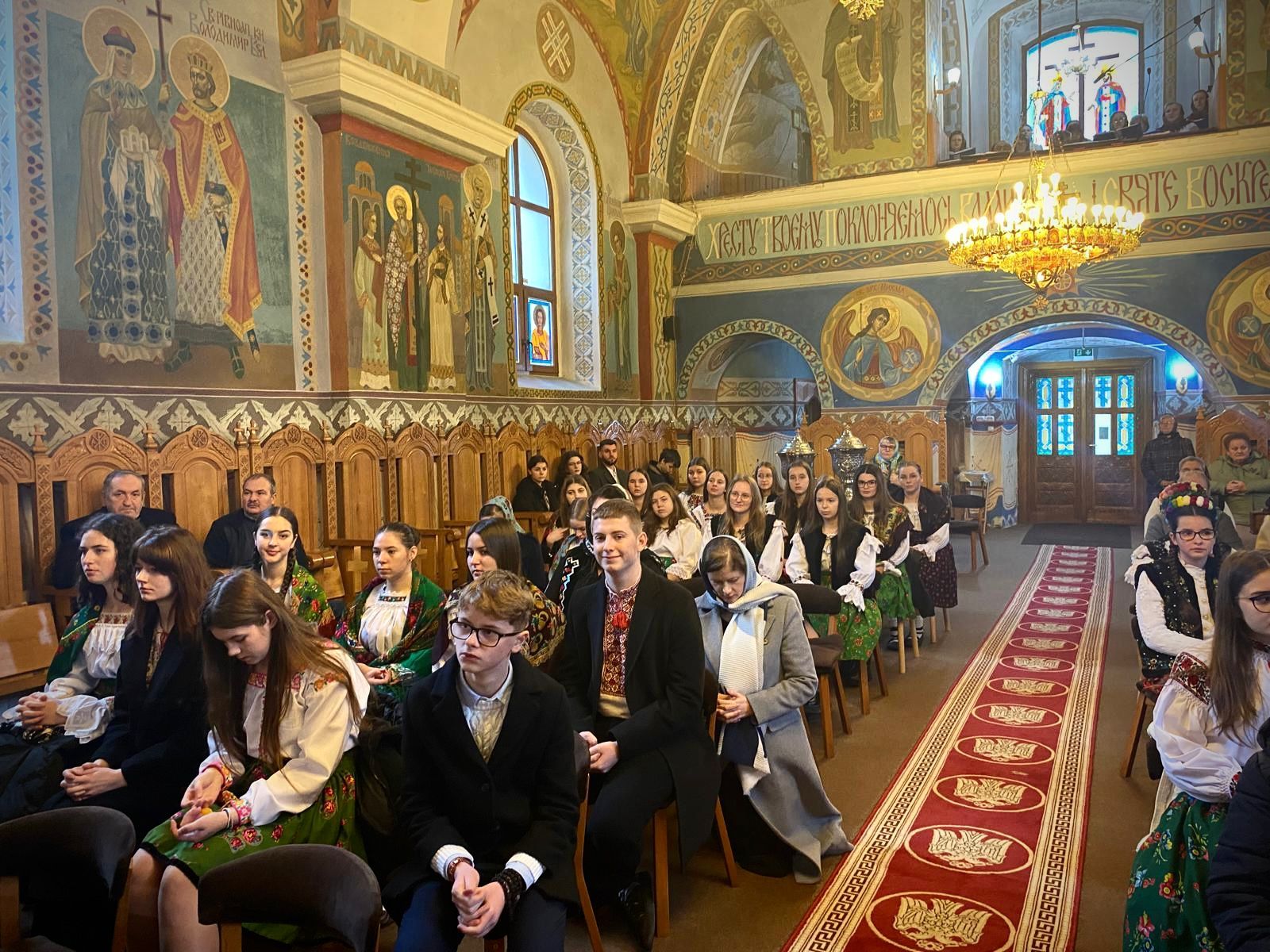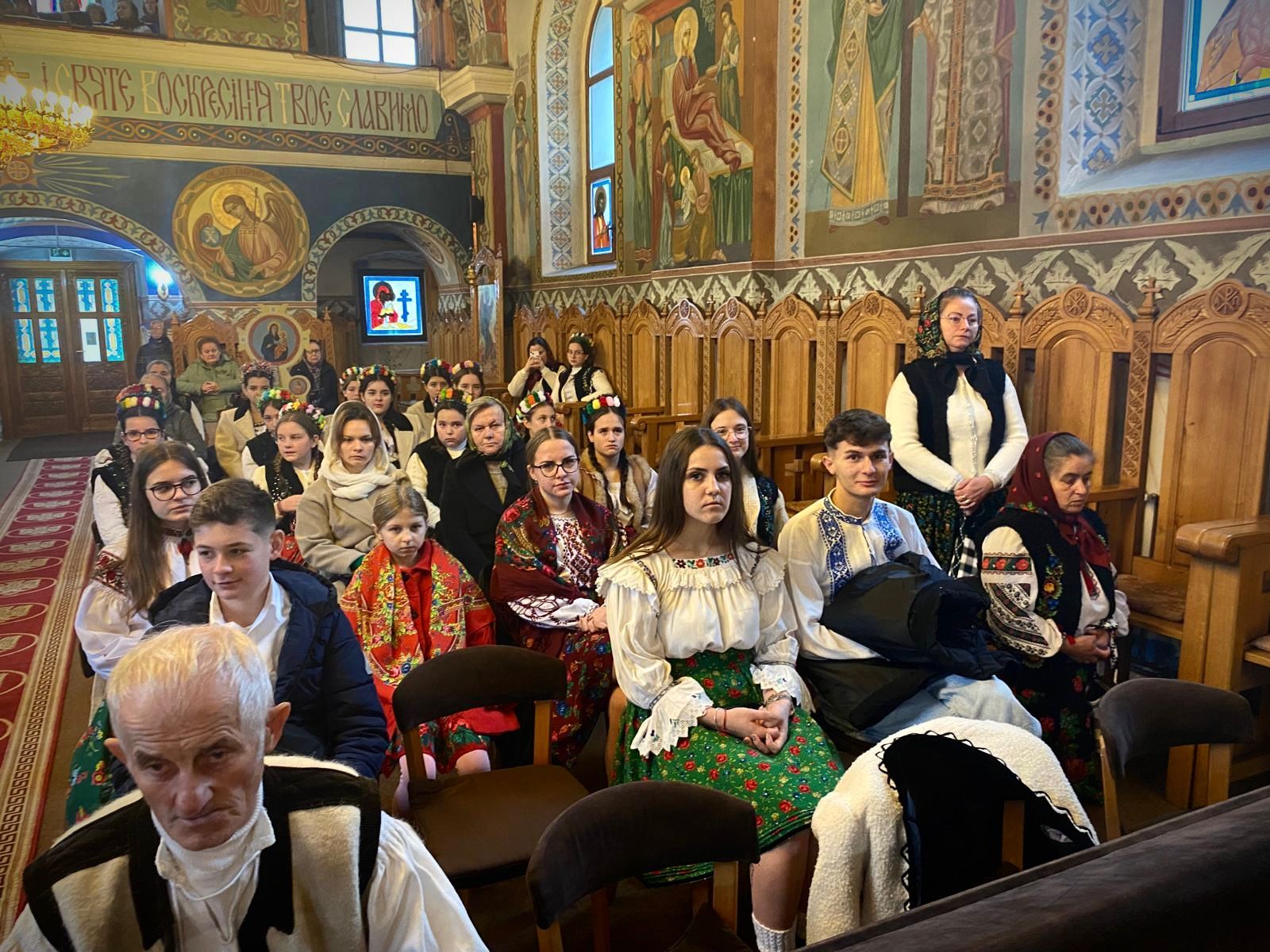 Potrivit obiceiului îndătinat, Preasfinția Sa a fost întâmpinat la venirea în parohie cu pâine și sare de către tineri îmbrăcați în straie tradiționale ucrainene.