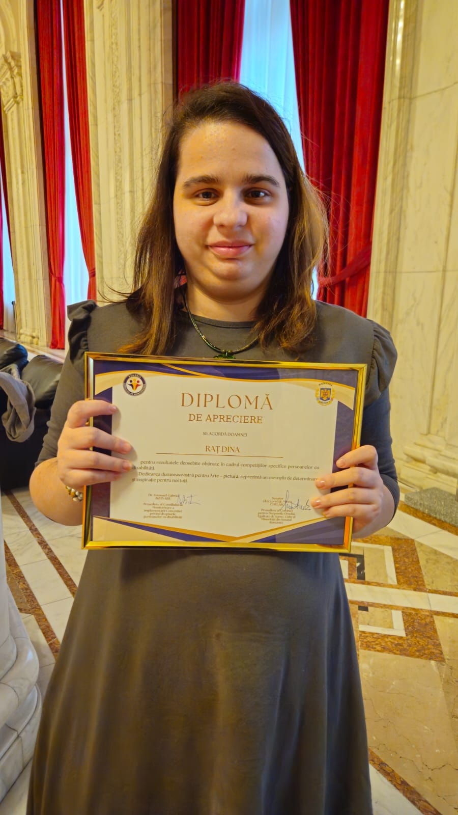 Raț Dina, tânăra care frecventează Centrul de Zi pentru Persoane Adulte cu Dizabilități Griviței din cadrul DGASPCMaramures, a trăit recent un moment cu adevărat special: a fost premiată în cadrul evenimentului „Ziua oamenilor care schimbă lumea prin exemple!”, organizat cu ocazia Zilei Internaționale a Persoanelor cu Dizabilități.