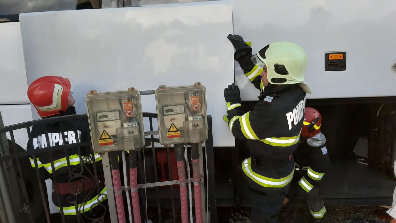 Aproape 5 ore s-au chinuit pompierii să scoată fiarele contorsionate din casa în care s-a înfipt autocarul. În această seară, în jurul orei 20.30 a fost reluat traficul rutier pe DN 18.