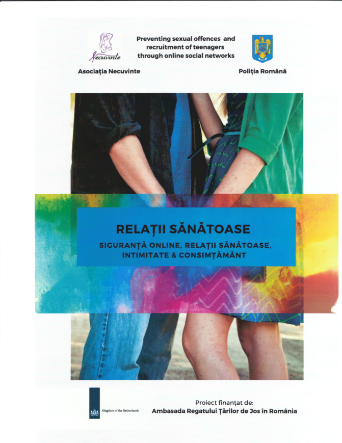 În cadrul proiectului „Prevenirea agresiunilor sexuale şi a recrutării adolescenţilor prin intermediul reţelelor de socializare”, finanţat de Ambasada Ţărilor de Jos în România, Poliţia Română împreună cu Asociaţia Necuvinte, au realizat Ghidul RELAŢII SĂNĂTOASE. Partener educaţional al proiectului este Consiliul naţional al elevilor.