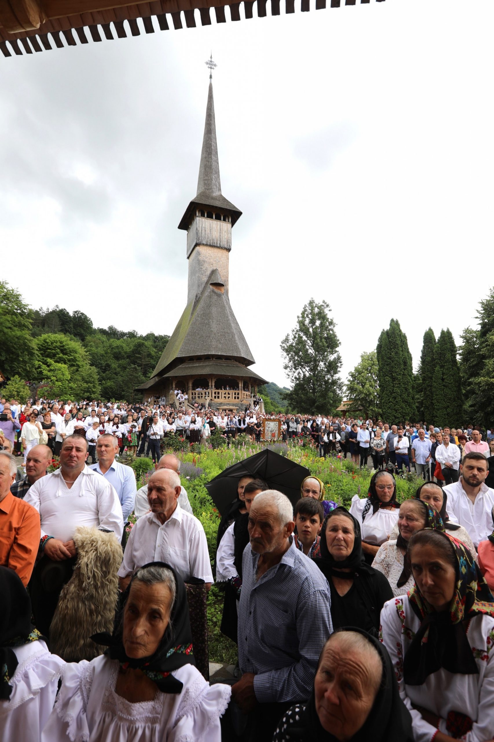În Altarul de vară începe Sfânta Liturghie. Binecuvântarea este dată de părintele arhimandrit Macarie Motogna, starețul unei alte citadele a ortodoxiei românești – Rohia. În soborul pe măsură, părintele arhimandrit Teofil Pop, starețul Mănăstirii Moisei, părintele Vasile Aurel Pop, protopopul de Sighet, părintele Marcel Oprișan, parohul localității, și alți vrednici preoți și diaconi. Asistându-i de-aproape, cu multă atenție și grijă, într-o continuă solicitudine, maica Filofteia, stareța mănăstirii. Între credincioși, doamna deputat Viorica Cherecheș, domnul Gabriel Zetea, președintele Consiliului Județean Maramureș, domnul Doru Dăncuș, vicepreședinte al Consiliului Județean, și domnul Teodor Ștefanca, primarul comunei Bârsana, îmbrăcat în voievodalele straie maramureșene, cu frumoasa lui familie, în larga familie a comunității. Ploaia (de vară) și Soarele alternează; amândoi vor să participe, cumva, la înălțătoarea slujbă. Peste capetele sutelor de credincioși se unduiesc, lin, psalmodierile Grupului „Theologos” al Catedralei Episcopale și, la momentul pricesnei, vocea ca un har a doamnei Ioana Botiș.