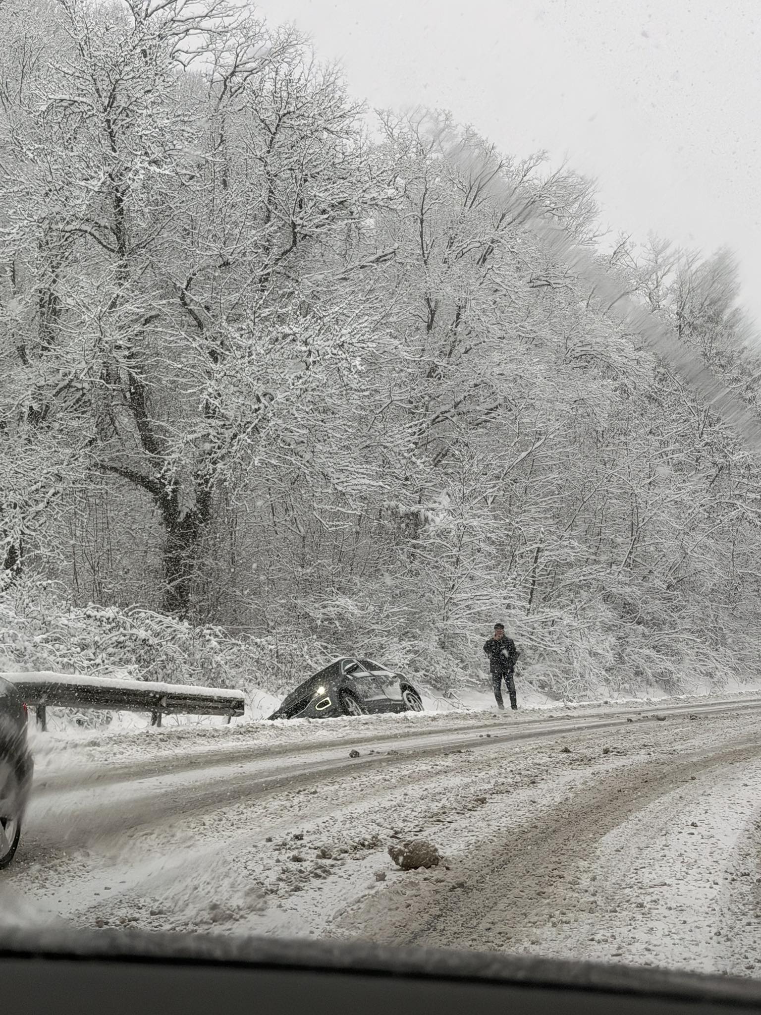 ”Groaznic drumul Baia Mare -Dej!(Perii Vadului)” se plâng șoferii care au asistat la ieșirea unei mașini în decor.