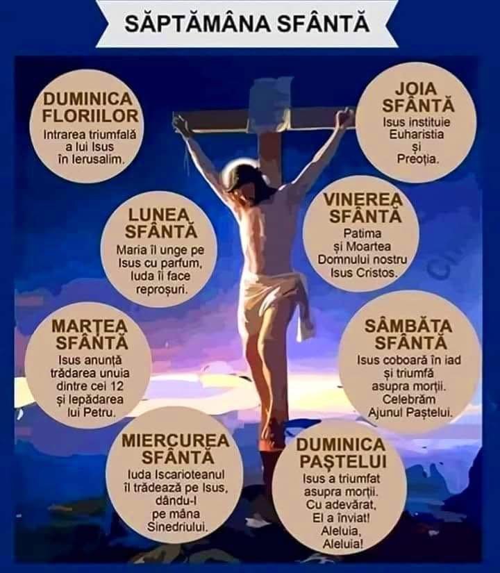 Credincioșii ortodocși și greco-catolici au intrat în una dintre cele mai importante perioade din calendarul religios, Săptămâna Patimilor, intervalul cuprins între Duminica Floriilor și Sâmbăta Mare. Această perioadă este dedicată rememorării ultimelor zile din viața lui Iisus Hristos, marcate de suferință, sacrificiu și, în final, de biruința asupra morții prin Înviere.