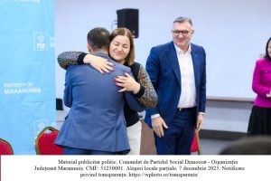 Material publicitar politic. Comandat de Partidul Social Democrat – Organizația Județeană Maramureș. CMF: 51250001. Alegeri locale parțiale, 7 decembrie 2025. Executat de: VASUT V. VASILE PFA, Publicat de: www.emaramures.ro; Notificare privind transparența!