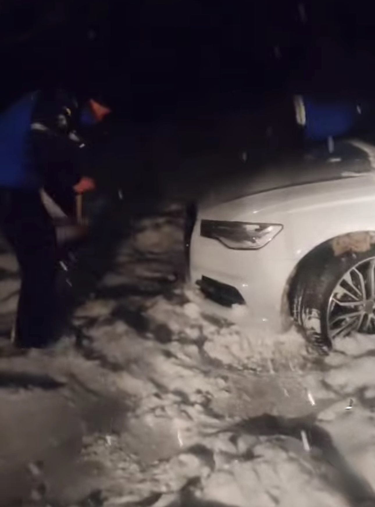 Întrucât a nins abundent toată ziua și s-a depus un strat consistent de zăpadă, și deși mașina era echipată cu anvelope de iarnă, aceasta nu a mai putut demara, rămânând blocată în parcare.