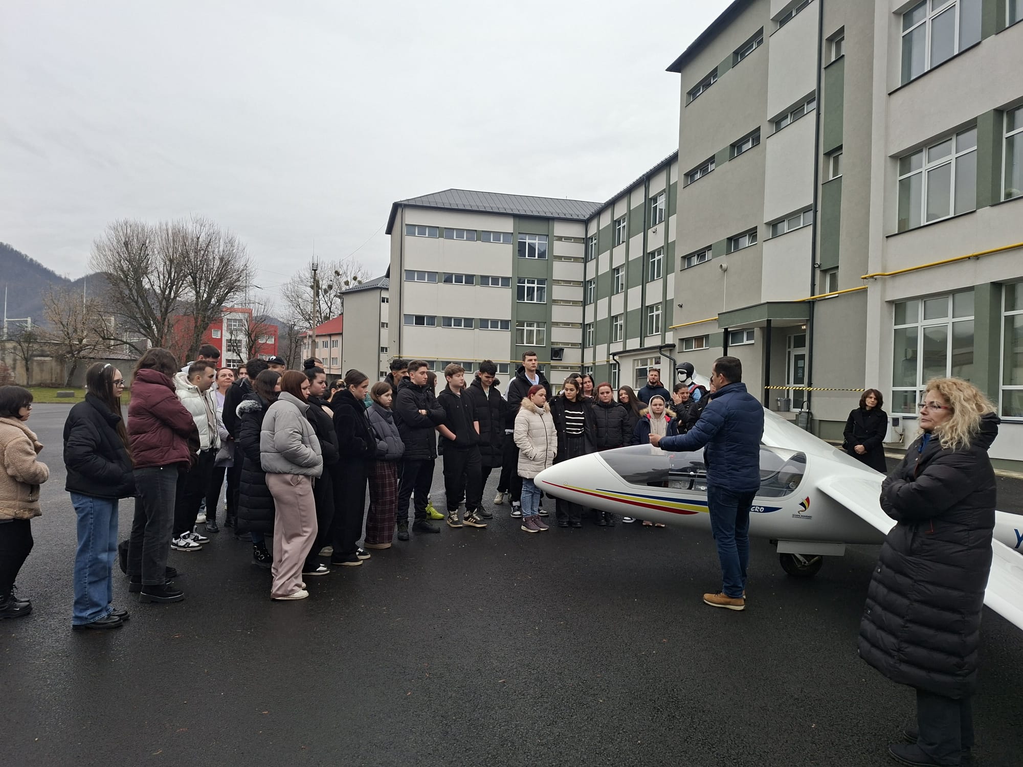 Curioși și entuziasmați, elevii au explorat un planor și echipamentele specifice domeniului aeronautic, ascultând explicațiile specialiștilor despre tehnica de zbor și responsabilitatea pe care o presupune această activitate. Dialogul deschis a transformat întâlnirea într-o adevărată lecție de viață, în care informația s-a împletit cu inspirația.