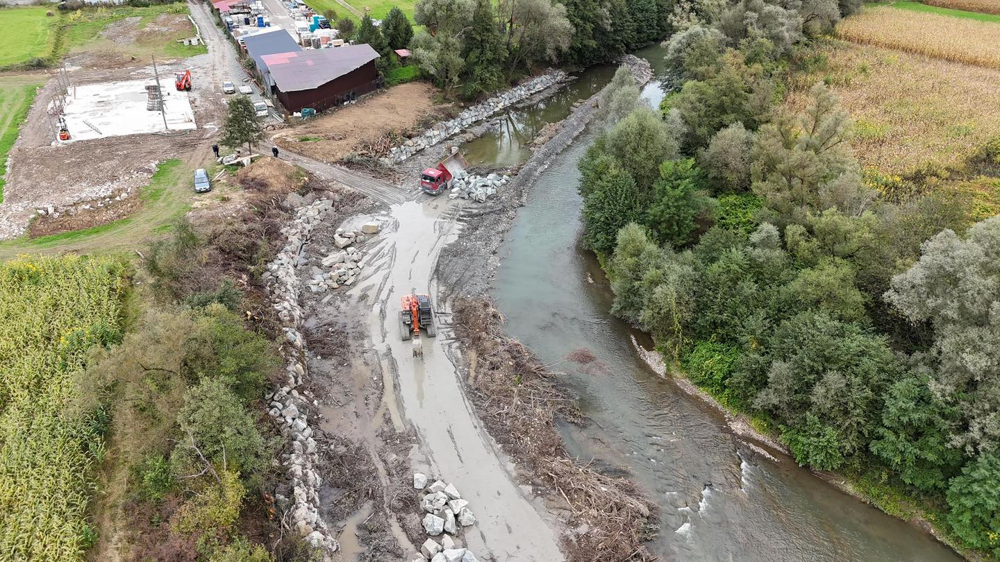Echipa Sistemului de Gospodărire a Apelor Maramureș a finalizat lucrările de reparații la consolidarea malului drept al râului Lăpuș, în localitatea Târgu Lăpuș, pe tronsonul HM 395-397.