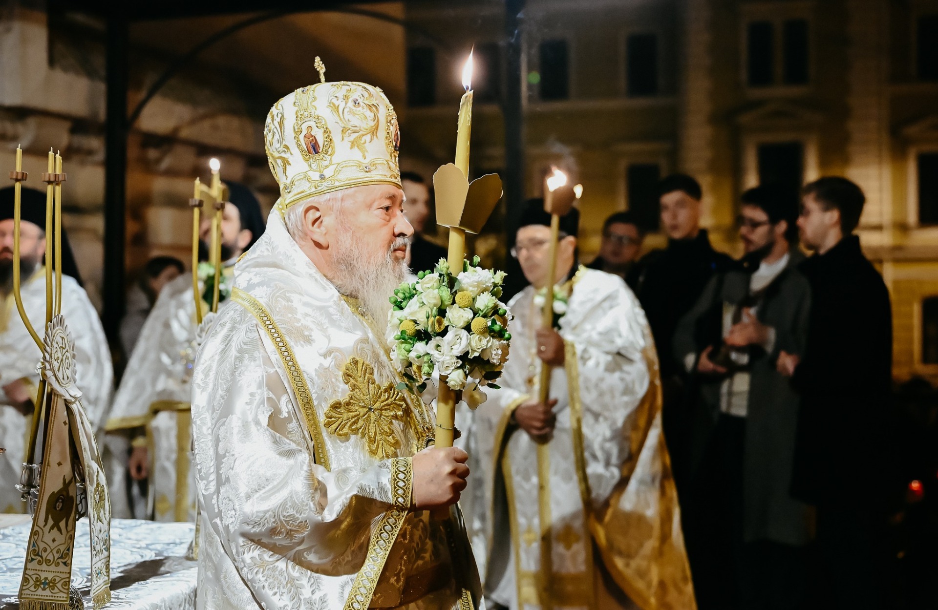 Programul liturgic a continuat duminică dimineața, când Andrei Andreicuț a oficiat Sfânta Liturghie pascală și a citit Pastorala la Praznicul Învierii Domnului, în fața unei noi mulțimi de credincioși adunați la catedrală.