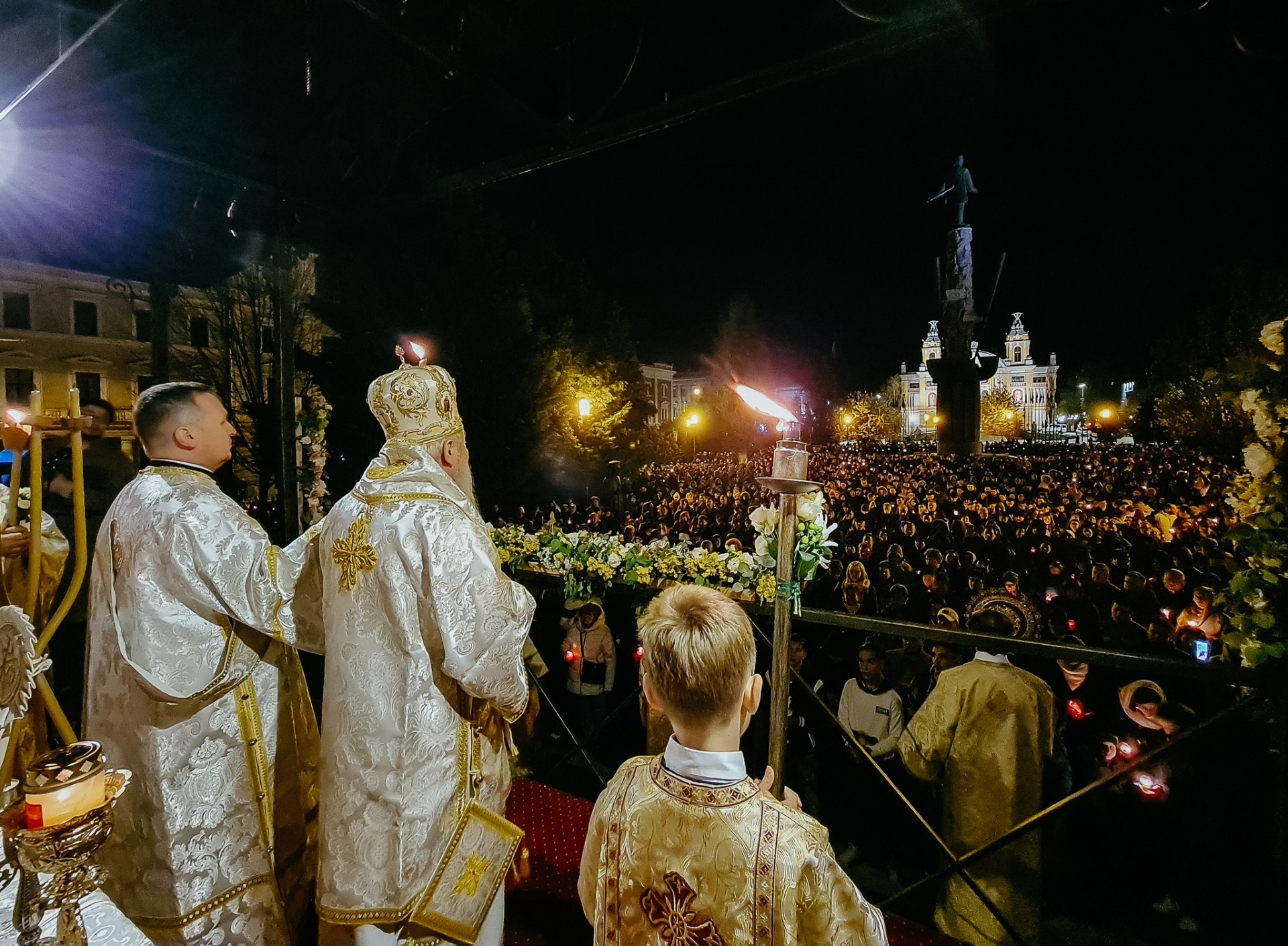 La miezul nopții, ierarhul a oferit Lumina Sfântă adusă de la Ierusalim, rostind tradiționalul îndemn „Veniți de luați Lumină!”, moment emoționant întâmpinat cu reculegere și bucurie de către participanți.